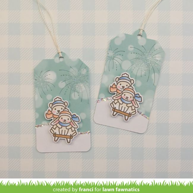 Franci’s sweet Tag, You’re It gift tags also feature the Stitched Fireworks as a festive backdrop to her sledding Snow One Like You critters.