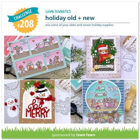 Let’s celebrate the holidays by combining old sets with new ones! Lawn Fawn stamps and dies are created to coordinate so mixing old and new sets together is a breeze and so much fun! Check out the Design Team inspiration below then join the Holiday Old + New challenge and have fun mixing and matching to make some festive holiday cards!