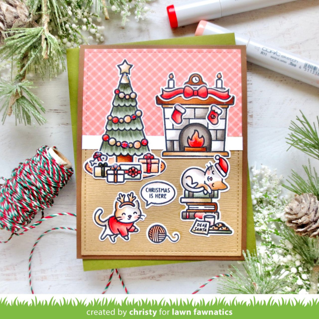 Christy created a cozy Christmas card that sets the scene with Christmas Dreams and our new Cozy Cats and Cozy Cats Christmas Add-On!