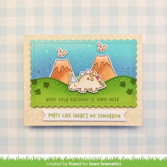 Our second dino card is from Franci, who added her sweet scene from Rawrsome onto a Flippin’ Awesome Add-on background panel.