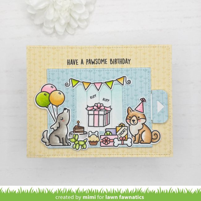 Mimi‘s incredible Magic Picture Changer card features the adorable pups from Yapppy Birthday and details from the Yappy Birthday Add-on!