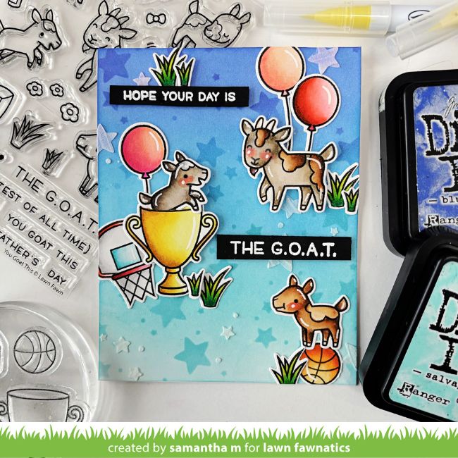 Samantha Mann‘s card is coming in clutch with a combination of You Goat This, All-Star, and the balloon from Party Animal!