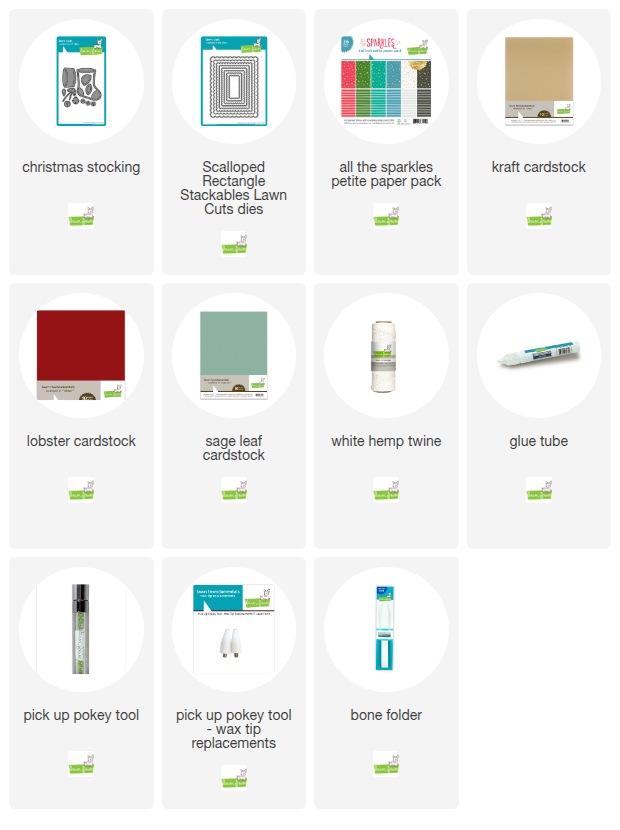 She’s also used the new All the Sparkles Petite Paper Pack to dress up her stockings with some gorgeous, patterned paper and added accents of Lobster and Sage Leaf cardstock.