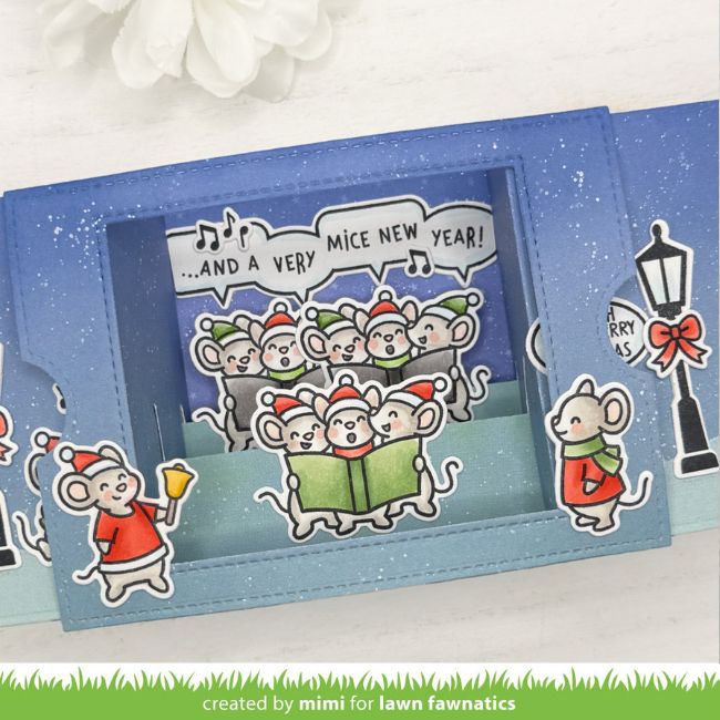 Ring-a-ling-a-ling! Mimi has created the most festive, interactive Christmas scene featuring the adorable Caroling Mice along with Cheesy Christmas!