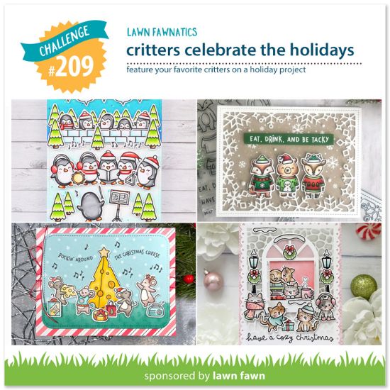 Let’s celebrate the holidays with our favorite critters! Lawn Fawn has so many adorable critters to choose from, so let’s get festive! Check out the Design Team inspiration below, then join the Critters Celebrate the Holidays challenge and have fun creating some jolly holiday cards!